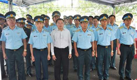 Đoàn lãnh đạo Quân chủng Phòng không Không quân trước linh cửu Thiếu úy Phạm Đức Trung