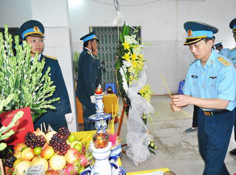 Trung tướng Nguyễn Văn Thanh, Bí thư Đảng ủy, Chính ủy Quân chủng Phòng không Không quân viếng Thiếu úy Trung.