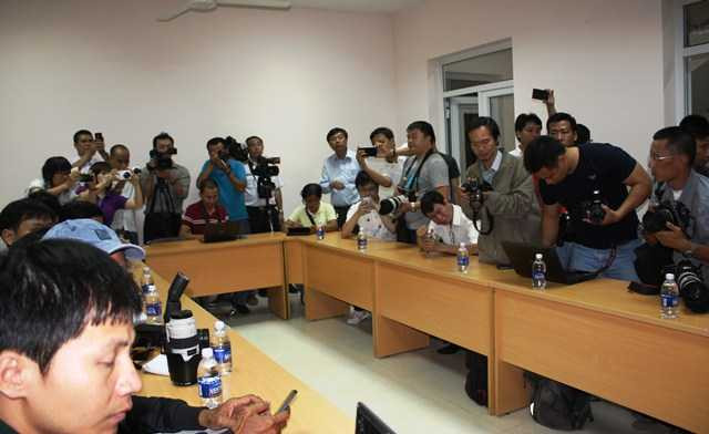 Đông đảo phóng viên báo đài trong buổi họp báo vào đêm 10/3 tại Phú Quốc (ảnh S.H)