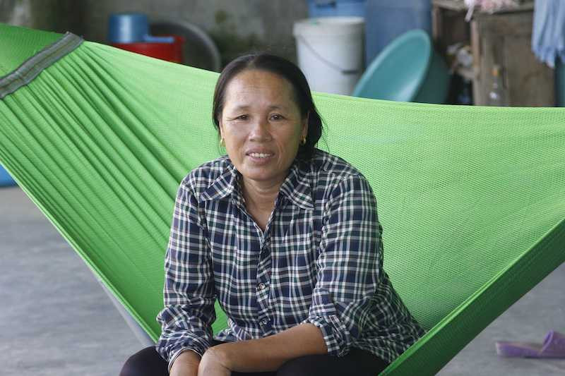 Chị Trần Thị Lê, vợ anh Phạm Văn Lệ, vui mừng khi biết tin chồng cứu được phi công.