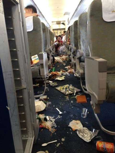 | Những hình ảnh được cho là cảnh trong khoang hành khách sau khi máy bay VNA bị tụt độ cao (Ảnh internet) |