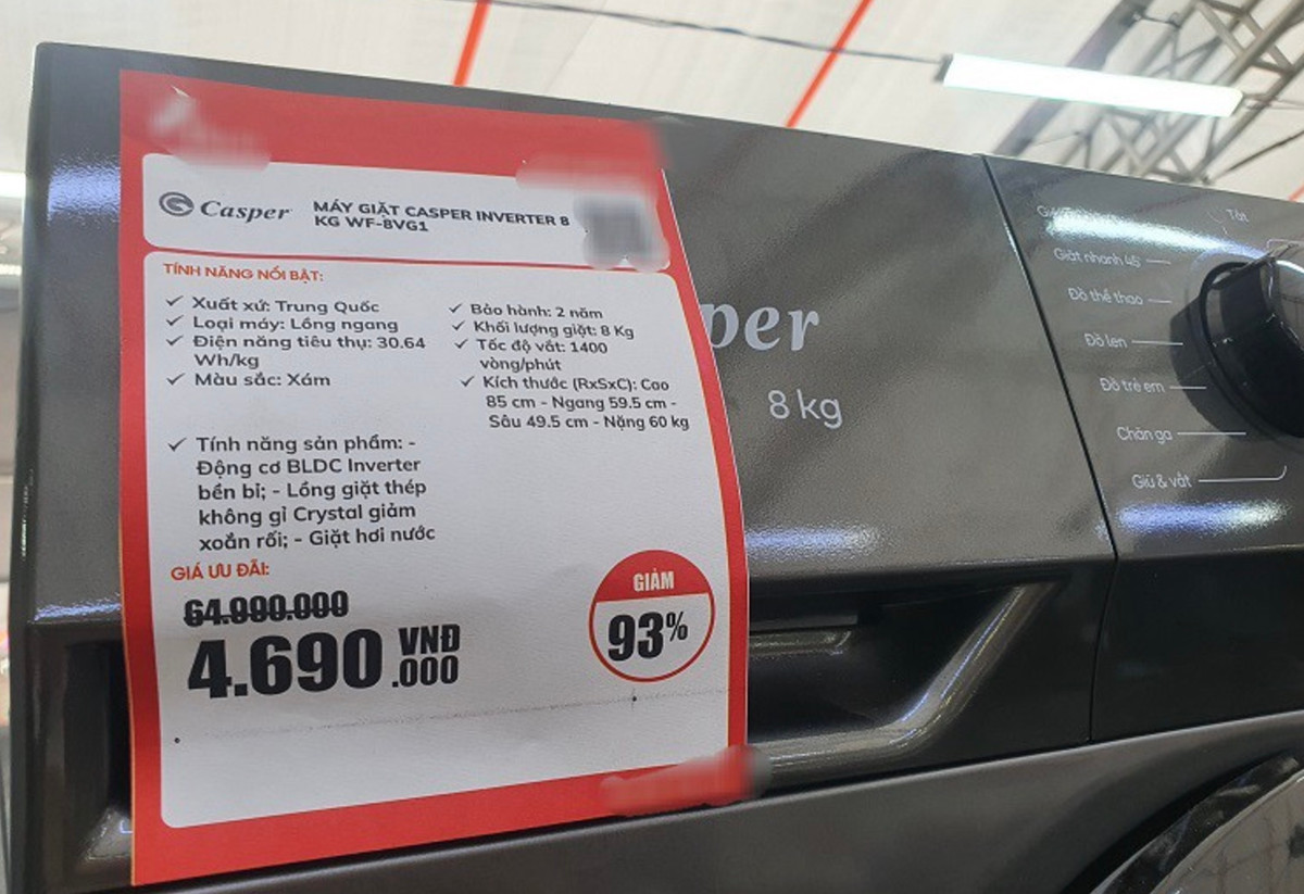 Muốn thay chiếc máy giặt của gia đình, chị Thanh Tâm (Hà Đông, Hà Nội) ghé vào một số siêu thị điện máy gần nhà và không khỏi choáng ngợp khi thấy nhiều sản phẩm giảm giá đến 93%.