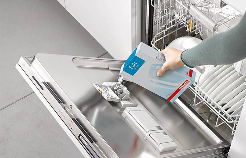 Bạn hãy bổ sung muối rửa bát theo quy trình sau: