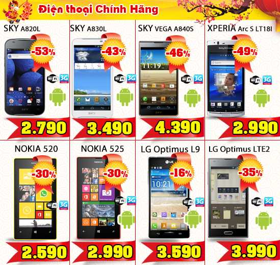 Điện thoại SAMSUNG, Sky, LG cảm ứng vơi mức giá khuyến mại khá mềm, Samsung galaxy i9000 chỉ còn 1990.000 VNĐ, Galaxy Note 2 giá bán 7.690.00.
