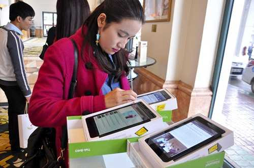 | Khách hàng trải nghiệm với máy tính bảng giá rẻ |
