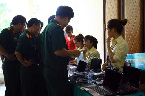 | Các chiến sĩ đang lựa chọn máy tính giá rẻ từ Viettel |