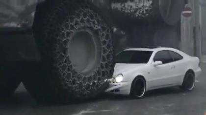 Sự việc xảy ra trước sự chứng kiến của nhiều người tại đó. Chiếc ô tô hư hỏng nặng nề bởi trọng lượng khổng lồ của chiếc xe.