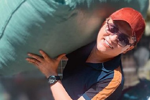 MC Đại Nghĩa và các cộng sự của mình chuyển gạo cho những người gặp hoàn cảnh khó khăn.