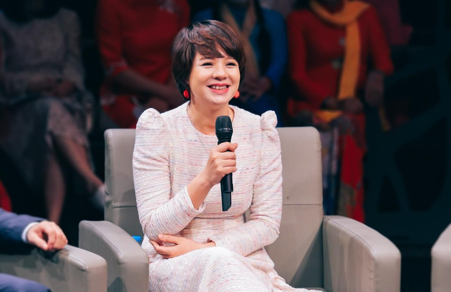 “Tôi nhớ, đối với hầu hết các cô cậu 7X, khi học hết lớp 12, vào đại học thì món quà đầu tiên chúng tôi nhận được đó là được phép đi dạ hội sinh viên. Thời điểm những năm 90, những dạ hội ở Bờ hồ Thiền Quang là chỗ bén duyên cho tất cả mọi người. Tôi và chồng cũng yêu nhau từ đấy”, nữ MC cho biết.