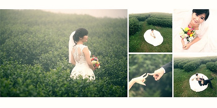 Hồng Nga tinh khôi trên những vạt đồi chè bát ngát. Có vẻ như cặp đôi đã lên vùng cao nguyên Mộc Châu để chụp những bức hình này.
