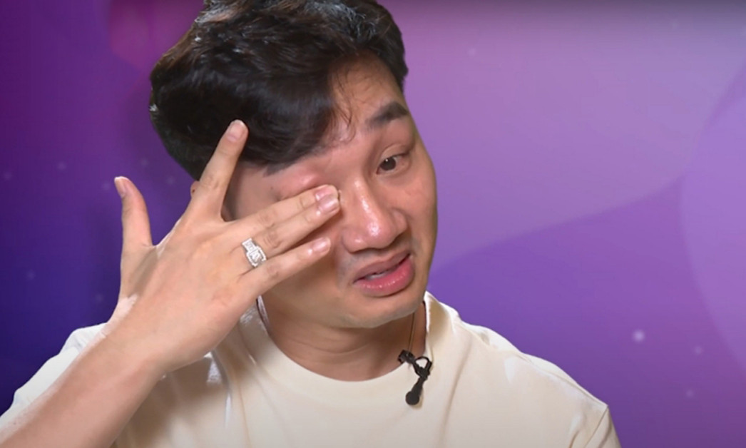 Thành Trung khóc nghẹn khi kể về người cha quá cố.