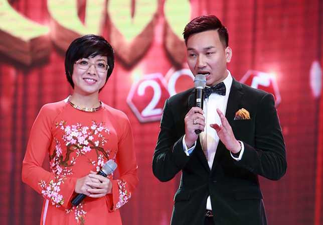 | MC Thảo Vân và Thành Trung trong buổi ghi hình tối qua |