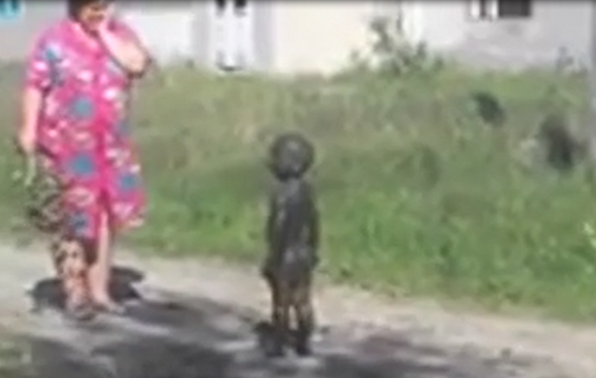 Người mẹ không nói nên lời vì buồn cười khi nhìn thấy 3 quý từ bị bùn bao phủ từ đầu đến chân do lăn lộn trong vũng lầy.