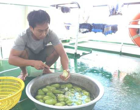 | Chiến sĩ Nguyễn Khắc Tuấn tham gia công tác cấp dưỡng trên tàu cảnh sát biển Việt Nam. (Ảnh: Quang Tùng) |