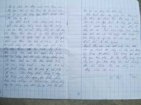 Lướt những dòng chữ viết vội trên trang vở học sinh, nước mắt bà Oanh tuôn chảy trên khuôn mặt đầy vẻ khắc khoải, nhớ nhung. Phải ngồi khá lâu bà mới có thể tiếp tục câu chuyện với chúng tôi.