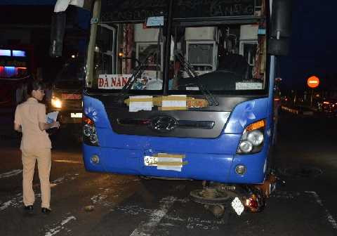 (VTC News) - Trên đường đón con đi học về, chị Loan lái xe rẽ sang đường để vào nhà thì va chạm xe khách, nạn nhân và xe máy bị cuốn vào gầm xe, kéo lê 10m.
