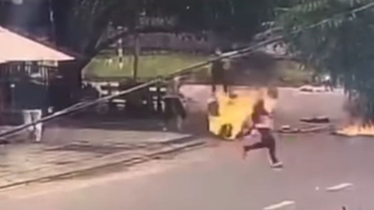 D. bị bỏng nặng sau khi bị tưới xăng, châm lửa đốt (Ảnh: Cắt từ clip)