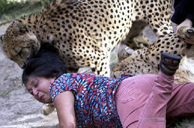 Thì ra con báo cái chỉ ra vẻ ngoan ngoãn để đánh lừa, sau đó xông lên vật người phụ nữ xuống đất, ngoạm vào phần gáy của chị, kéo tóc lôi đi. Rất may là nhân viên sở thú can thiệp kịp thời nên hậu quả không trở nên quá tồi tệ.