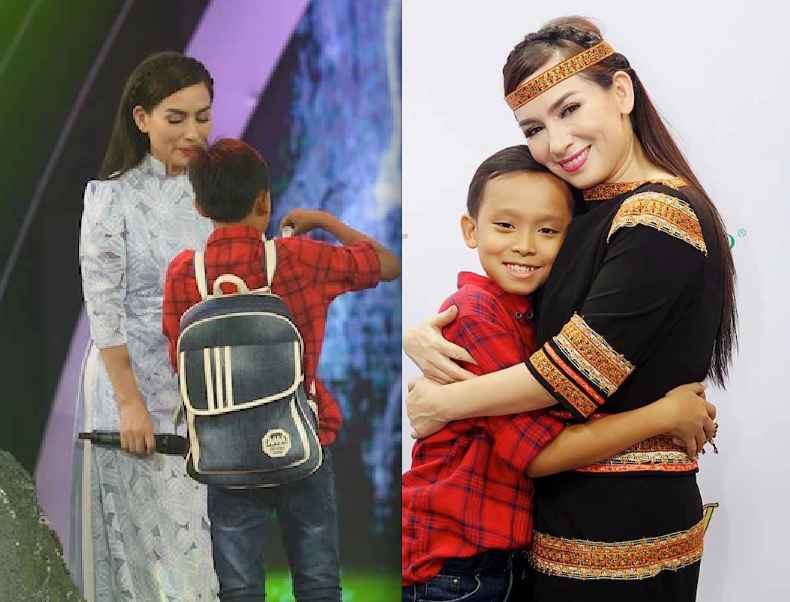 Khi đi ghi hình chương trình, cô dẫn theo con trai nuôi Hồ Văn Cường đến trường quay.