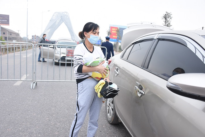 Chiều 30/1, tại chốt kiểm soát dịch bệnh COVID-19 trên Km46+300 QL18 đoạn qua phường Hoàng Tiến (TP Chí Linh, Hải Dương), sản phụ 36 tuổi ở TP Chí Linh được đặc cách qua chốt trở về quê.