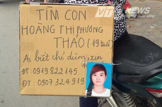 Trước đó, dư luận xôn xao trên facebook hình ảnh chị Vũ T.L. (40 tuổi, quê Thái Nguyên) chạy xe máy khắp thành phố Sài Gòn, đeo tấm biển với nội dung: "Tìm con Hoàng Thị Phương Thảo, 19 tuổi. Ai biết chỉ dùm, liên hệ số điện thoại: 0919822145 - 0907324919" kèm tấm hình con gái chị.