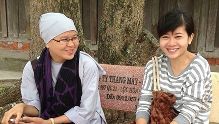 Hình kỉ niệm của Mai Phương cùng vị sư cô đang chăm sóc nữ diễn viên ở trong viện.