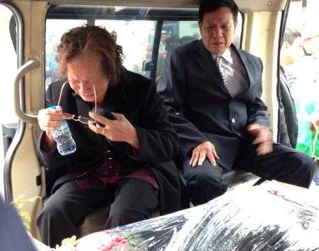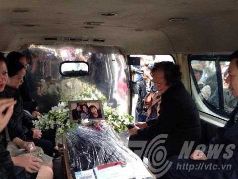 Quan tài 3 nạn nhân được đưa lên xe tang lễ đã đợi sẵn. Bước lên xe, bà Quảng Thị Thắng (bác ruột nạn nhân Minh) liên tục gọi lên hai cháu. "Các cháu ơi, về hát, về diễn kịch cho bà xem đi. Sao các cháu lại im lặng như vậy", tiếng khóc xé lòng của bà Thắng bên thi hài các cháu mình.