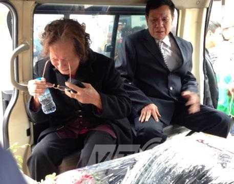Đi phía sau quan tài, mẹ nạn nhân Minh là bà Quảng Thị Phong khóc ngất trong giây phút nhận tro cốt người thân. Nỗi đau tột cùng ập đến gia đình bà khi chuyến bay định mệnh đã cướp đi sinh mạng của con gái và hai cháu ngoại.