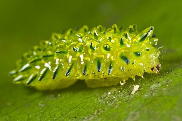 Sinh vật tuyệt đẹp này có tên gọi là Jewel Caterpillar (Sâu bướm ngọc) vì hầu hết chúng sở hữu một cơ thể trong suốt, đôi khi được tô điểm thêm những gai xanh, đỏ lộng lẫy.