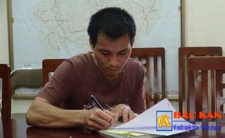 | Anh Tuấn làm bản tường trình tại Phòng CSGT Bắc Kạn. Ảnh CABK |