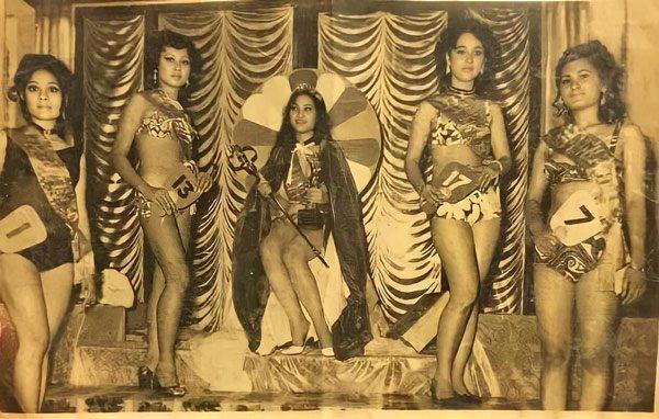 Mẹ của nữ nghệ sĩ (thứ 2 từ phải sang) trong khoảnh khắc đăng quang á hậu tại một cuộc thi nhan sắc.