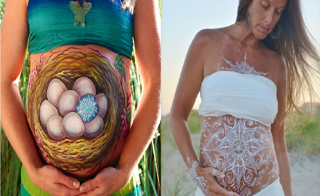 Phong cách chụp ảnh cho các bà bầu đang được nâng lên một tầm cao mới với xu hướng vẽ lên bụng trước khi sinh. Nhờ sự trợ giúp của các nghệ sĩ vẽ tranh trên cơ thể chuyên nghiệp như Heather Aguilera, phần bụng của các bà bầu sẽ trở thành bức tranh sinh động, độc đáo, các vết rạn da được che lấp. Bộ ảnh là cách thức thú vị để thể hiện vẻ đẹp của người mẹ sắp vượt cạn, lưu giữ kỷ niệm quý giá, thiêng liêng về giai đoạn quan trọng của hai mẹ con.