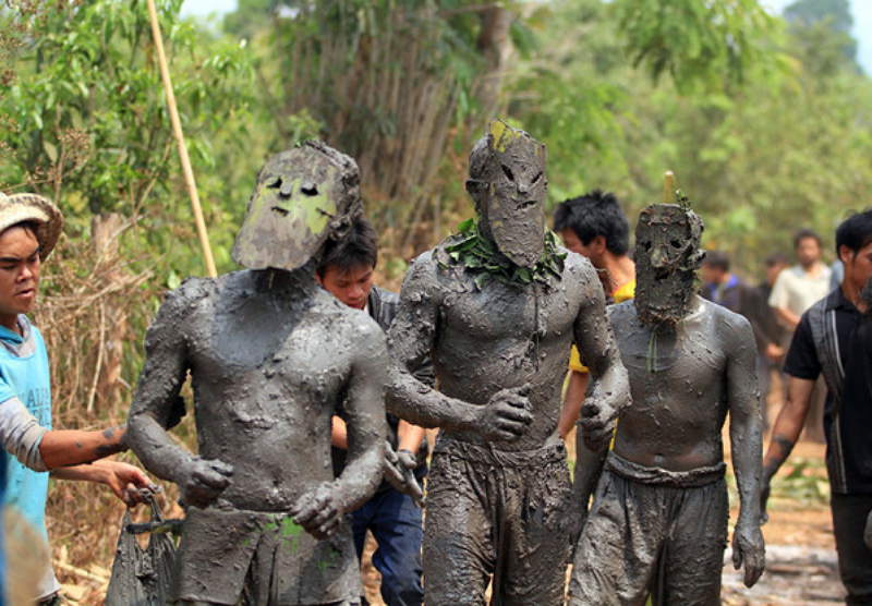 Đó là những chàng trai mạnh khỏe hóa trang bằng bùn đất và lá cây, xuất hiện trong sự reo hò của đám đông, trong thanh âm dồn dập của chiêng trống. Họ bắt chước điệu đi của khỉ, của những con vật. Họ múa và làm trò. Đám đông vây kín những Pram, hò hét cổ vũ đến khản đặc cả tiếng.