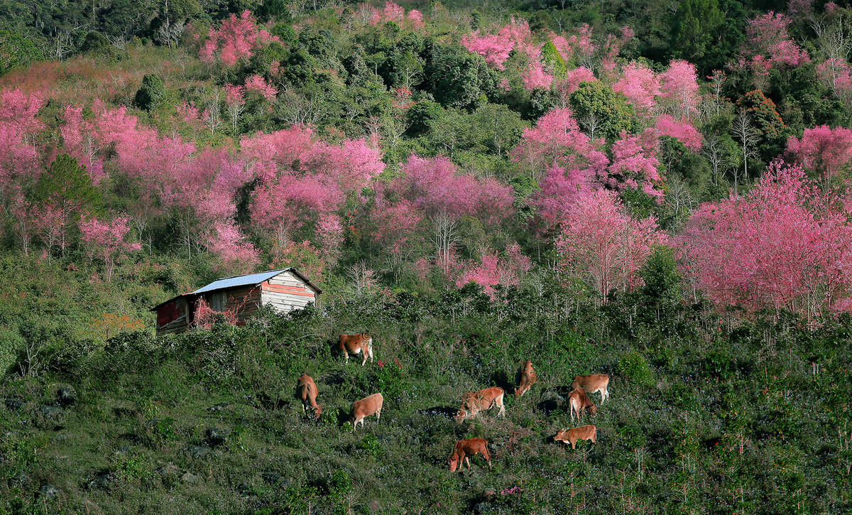 Không chỉ tại núi rừng Langbiang, nhiều cung đường khác tại Lâm Đồng cũng được nhuộm hồng bởi mai anh đào.
