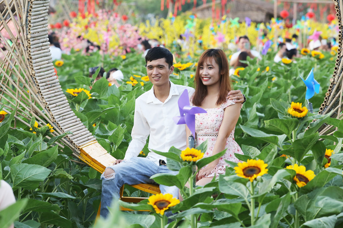 Những bông hoa hướng dương rực rỡ dưới ánh mặt trời tạo nên khung cảnh màu sắc tuyệt đẹp khiến giới trẻ mê mẩn.