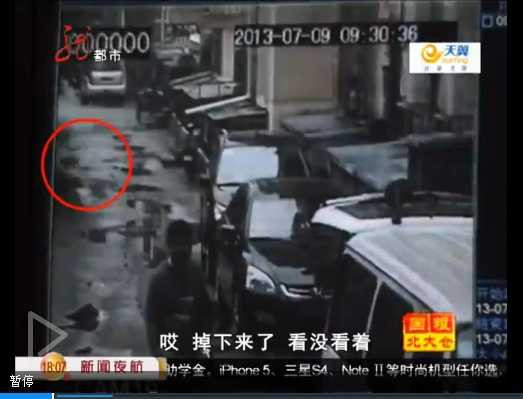Một camera giám sát ở Cáp Nhĩ Tân đã ghi lại được hình ảnh chiếc túi chứa đứa trẻ rơi bịch xuống đường, sau đó bị một chiếc xe cán qua. Cảnh tượng này sau đó được phát sóng trên kênh truyền hình tỉnh Hắc Long Giang.