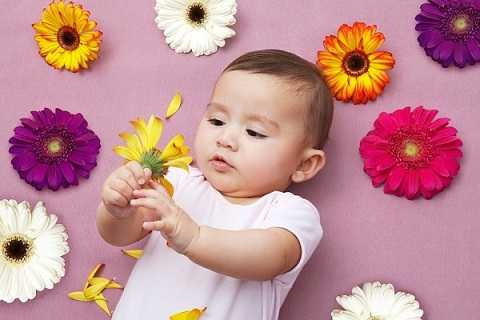 Để trẻ ngửi hương thơm dịu dàng của những bông hoa. Trẻ sẽ nhoài đầu để hướng tới loại mùi này. Mẹ càng cho bé tiếp xúc với nhiều loại mùi khác nhau thì khứu giác của trẻ càng phát triển.