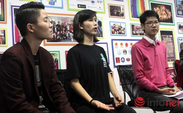 | Lần lượt từ trái qua phải là Tú, Phong, Huy trao đổi về giới tính |