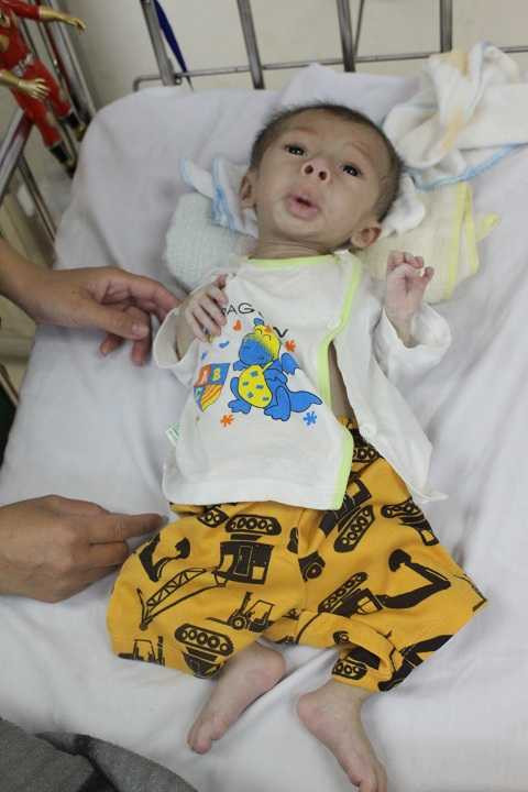 | Cháu Hoàng Gia Bảo gầy gò, xanh xao do căn bệnh tim bẩm sinh |