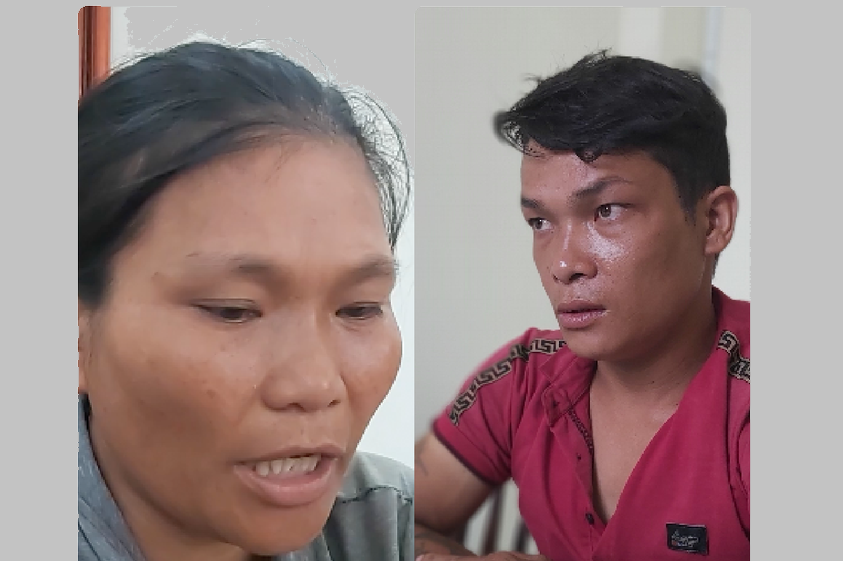Đào Thị Gái và Đào Văn Bé tại cơ quan điều tra.
