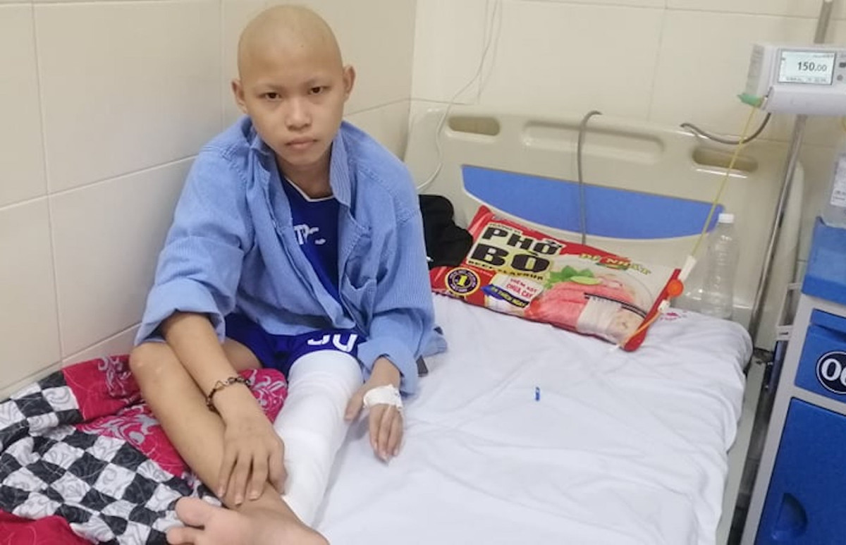 Sau nhiều đợt truyền hoá chất tại viện, bác sĩ báo sức khoẻ của Quý có thể làm phẫu thuật ghép xương đùi. Chi phí đóng trước cho ca phẫu thuật gần 300 triệu đồng, nếu để lâu buộc phải tháo khớp đùi để tránh di căn.