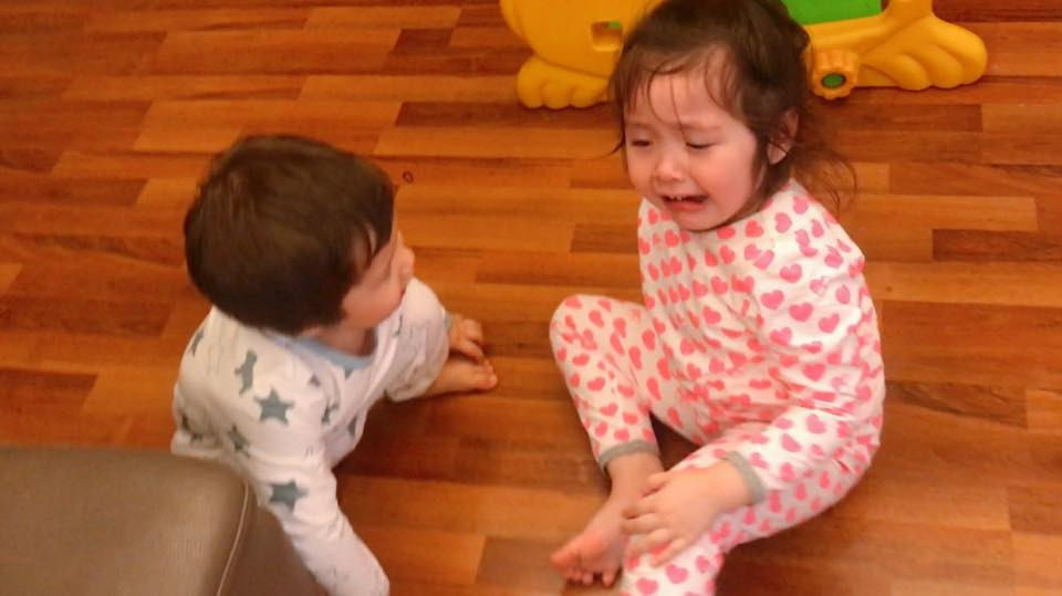 Về nhà mẹ rửa ráy rồi đi lấy băng cá nhân cho chị, quay ra thấy chú em đứng xoa xoa chân chị, còn cuối xuống hôn. Cô chị xúc động quên cả khóc!