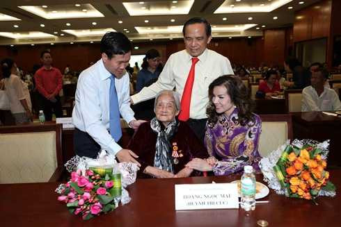 Ông Lê Hoàng Quân - Ủy viên Trung ương Đảng – Chủ tịch UBND TP.HCM chúc mừng Mẹ Việt Nam anh hùng Hoàng Ngọc Mai.