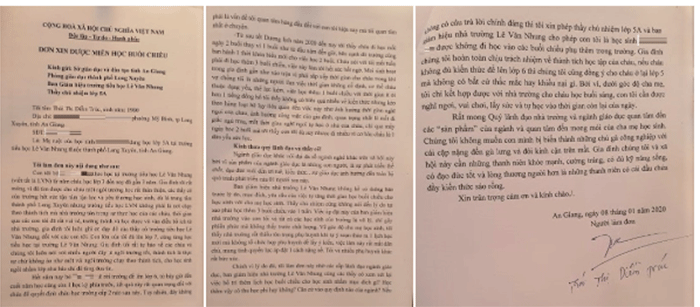 Lá đơn của một phụ huynh gửi trường Tiểu học Lê Văn Nhung và ngành giáo dục tỉnh An Giang xin cho con không phải học thêm buổi chiều được chia sẻ trên diễn đàn mạng, khiến nhiều người xôn xao.