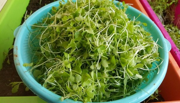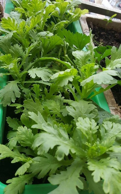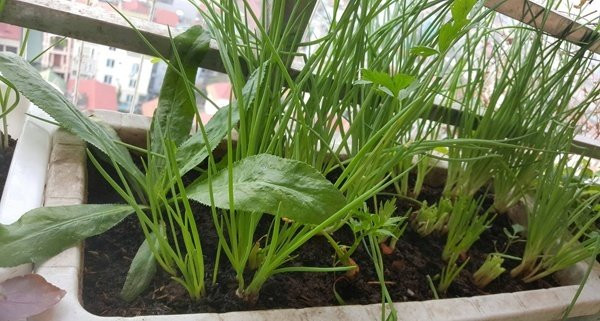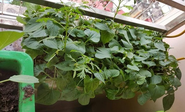 | Năm nay gia đình chị sẽ được ăn mồng tơi thoải mái. Bà mẹ đảm cũng khoe đang trồng một chậu tỏi Lý Sơn xanh mướt nhưng chưa biết có được thu hoạch không. |