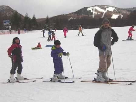 | Bé Linh, Hán cùng bố chơi trượt tuyết. |