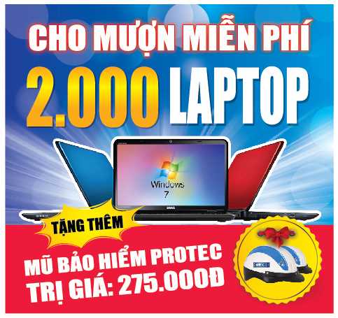 Theo đó, từ 24/8-15/10/2012, 2000 bạn trẻ sẽ được dùng thử hoàn toàn miễn phí sản phẩm laptop Acer Aspire As4739 core i3, ram 2Gb, ổ cứng 320Gb, lại được tặng thêm 01 mũ bảo hiểm Protec trị giá 275.000đ.