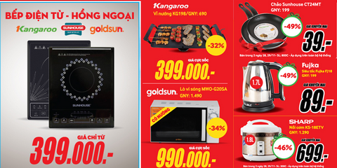 Tham quan gian hàng gia dụng Media Mart để mua ngay Lò vi sóng có nướng Goldsun MWO-G20SA giảm 34% giá cực sốc 990.000đ, vỉ nướng Kangaroo KG198 giảm 32% còn 399.000đ, nồi cơm điện Sharp KS-18ETV giảm 46% giá sốc 699.000đ..