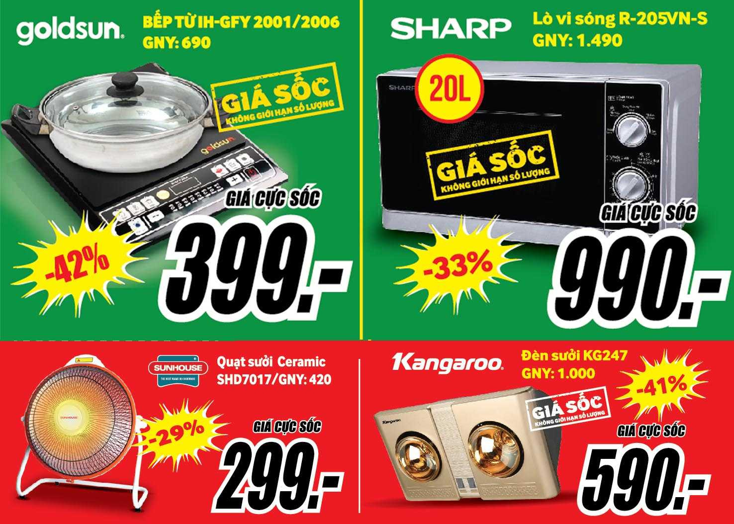 Tham quan gian hàng gia dụng Media Mart để mua ngay Lò vi sóng 20l Sharp E-205VN-S giảm 33% còn 990.000đ, bếp từ Goldsun IH-GFY 2001/2006 giảm 42% còn 399.000đ, nồi cơm điện Goldsun 1,8l ARC-G18CM giảm 40% còn 259.000đ…
