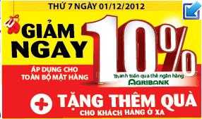 Điểm nhấn tuần lễ khởi động “Mùa giảm giá cuối năm” này là ưu đãi giảm 10% tất cả các mặt hàng khi thanh toán qua thẻ Agribank - Chương trình do Media Mart và Agribank hợp tác triển khai, áp dụng trong 01 ngày duy nhất thứ 7 ngày 1/12.